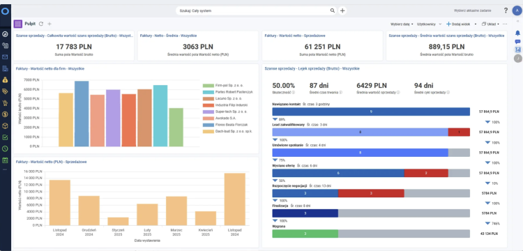 System pozwala na pełną kontrolę nad przebiegiem procesów sprzedażowych, obsługą klienta, stanami magazynowymi oraz rozliczeniami. Co istotne, nie wymaga przy tym korzystania z wielu oddzielnych narzędzi – wszystkie kluczowe funkcje są dostępne w ramach jednej platformy.