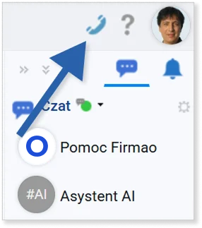 Kliknij ikonę słuchawki w systemie Firmao w prawym górnym rogu systemu, gdy przychodzi połączenie.