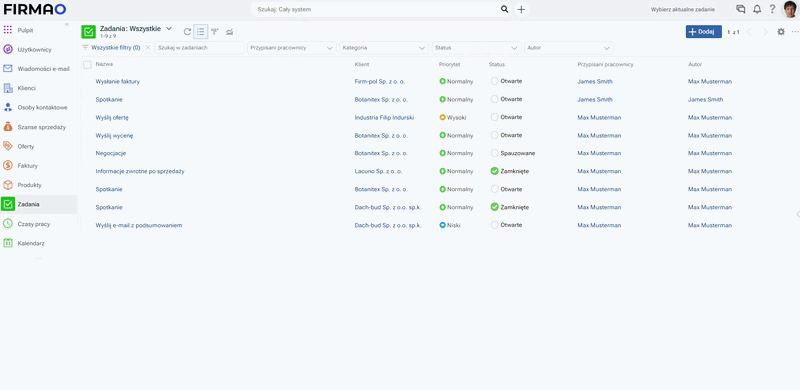 W celu ustawienia wykonywanego zadania z widoku szczegółów kliknij moduł „Zadania” w menu głównym, a następnie kliknij nazwę zadania, które chcesz rozpocząć.