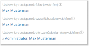 Jeśli dany użytkownik przypisany jest do jednego z tych uprawnień, np. ma dostęp do wszystkich zadań swoich firm, to będzie widział wszystkie zadania firm, do których przypisany jest jako osoba odpowiedzialna. Analogicznie funkcjonuje to w przypadku uprawnienia odpowiadającego za widoczność faktur oraz ofert i zamówień.