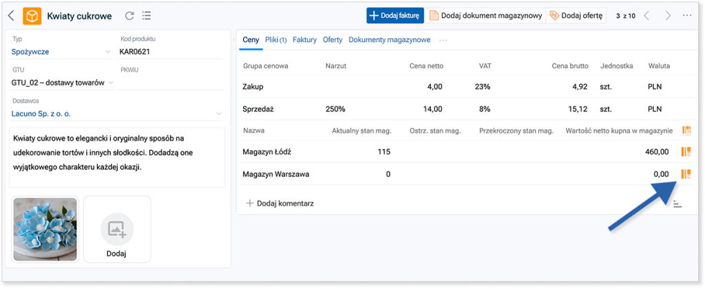 Otwórz okno dodawania dokumentu magazynowego lub faktury.