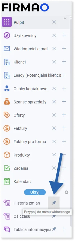 W Firmao możesz dostosować menu główne tak, aby mieć dostęp do najważniejszych dla Ciebie funkcji.