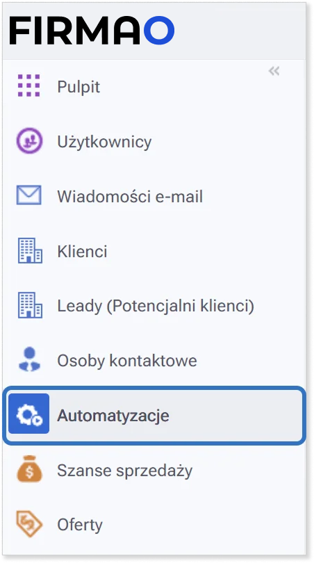 W celu konfiguracji nowej lub edytowania istniejącej akcji kliknij pozycję Automatyzacje w menu głównym.