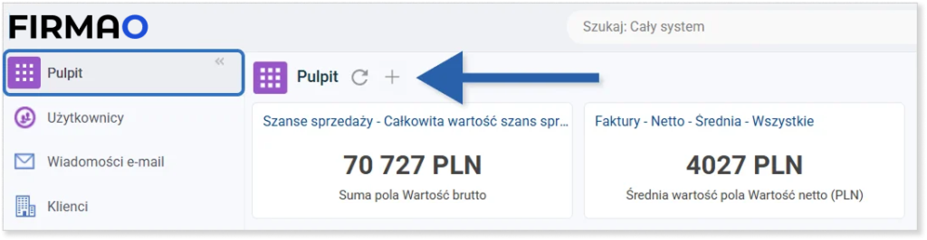 W systemie Firmao możesz konfigurować własne pulpity. Pulpit to widok, który pokazuje się jako pierwszy po zalogowaniu do systemu. Za jego pomocą możesz w szybki sposób sprawdzić m.in. wyniki finansowe firmy, ilość nowych klientów